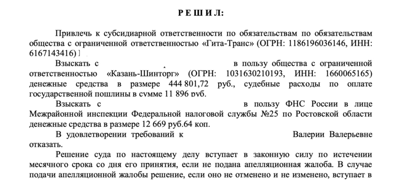 Завершилось дело о привлечении нашего клиента к субсидиарной ответственности.