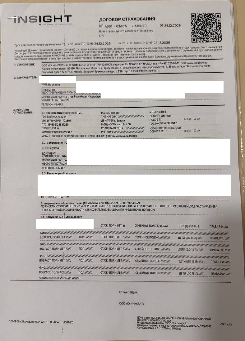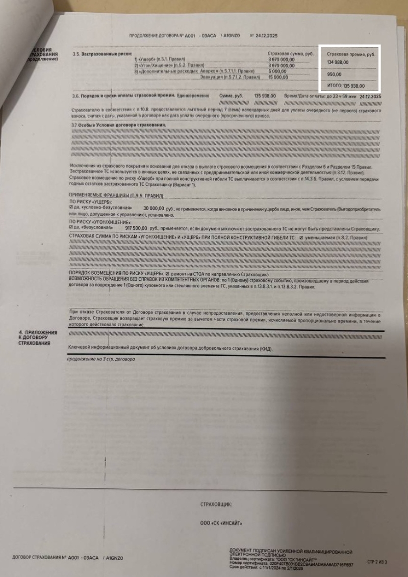 Пример договора КАСКО от ООО СК “Инсайт”: