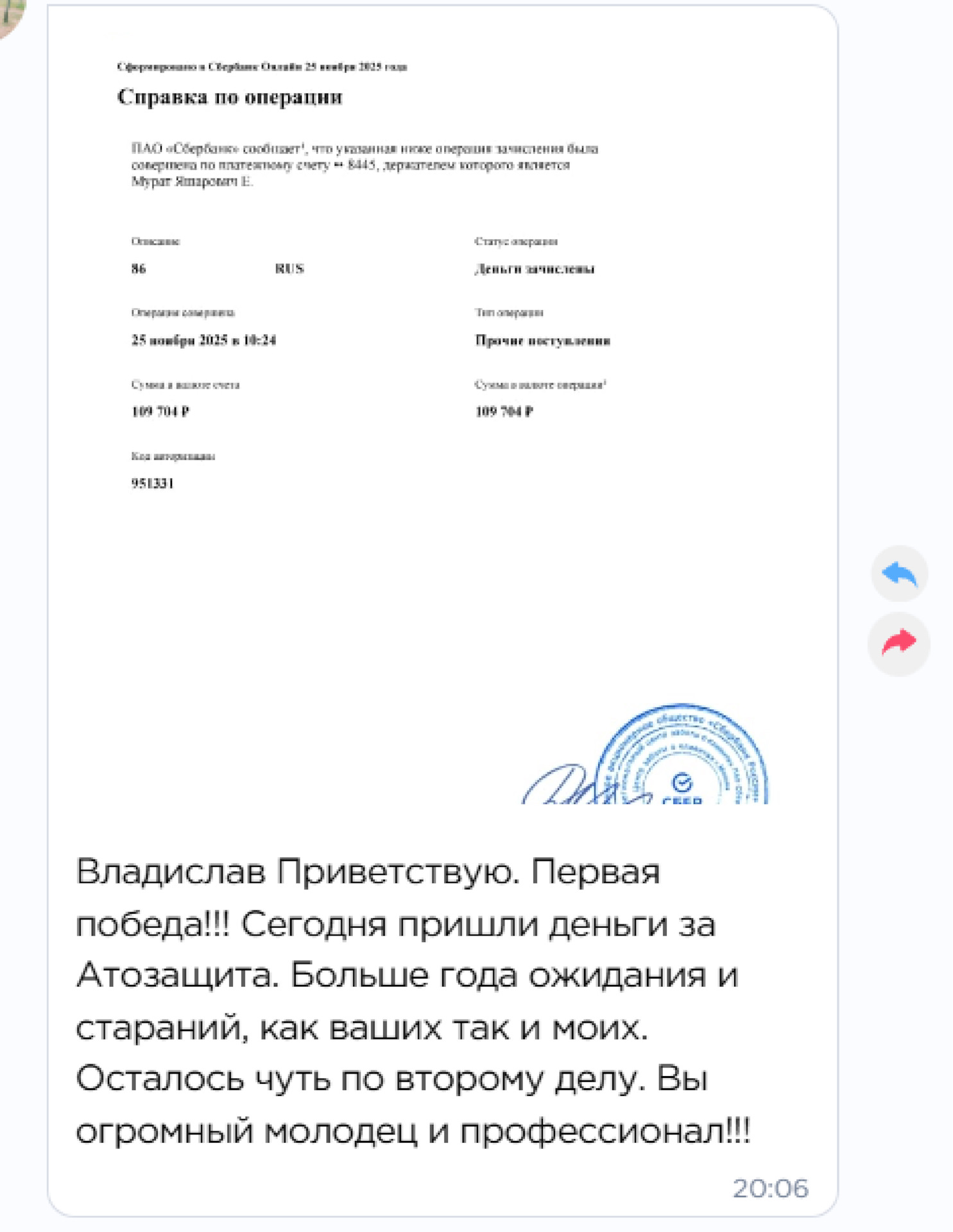 Решение суда ответчик тоже не спешил исполнять, поэтому мы обратились к судебным приставам для принудительного взыскания. Спустя почти 4 месяца приставы взыскали с ООО «Авто-Защита» всю сумму по решению суда в размере 109 704р.