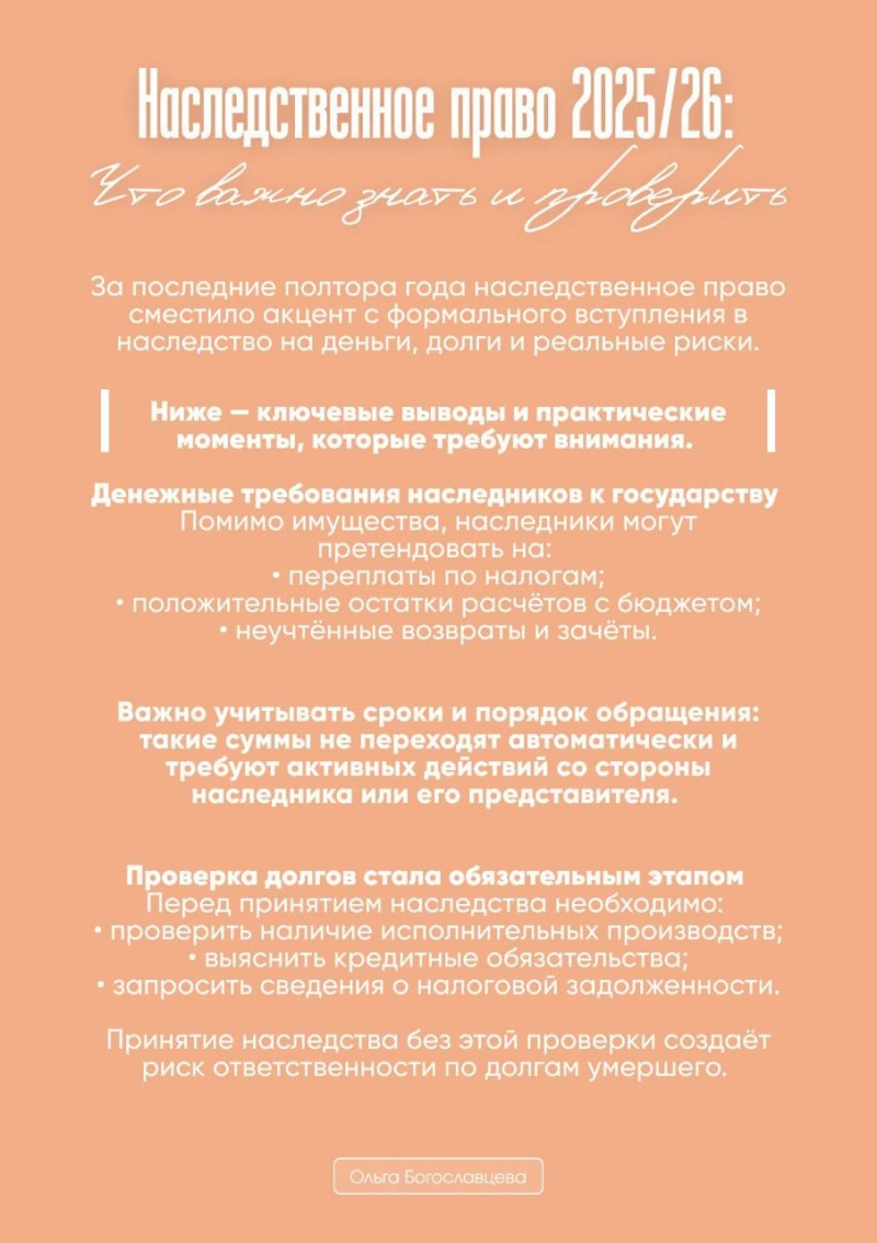 Друзья, частые обращения по вопросам наследства натолкнули меня на мысль о необходимости подготовить краткий пошаговый чек-лист по наследству 2026❗️