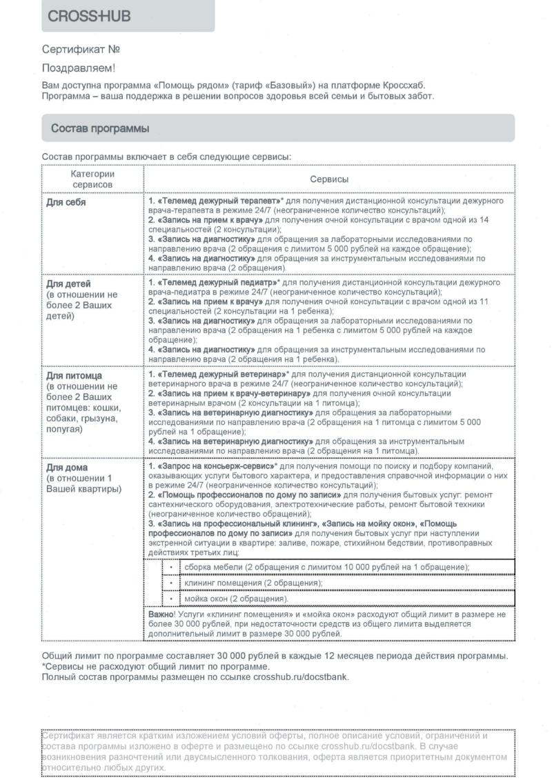 Важно понимать ключевой момент: продукт от ООО «Кроссхаб» не имеет никакого отношения к классическому страхованию. Это стандартный договор возмездного оказания услуг (чаще всего – дистанционных медицинских или юридических консультаций).