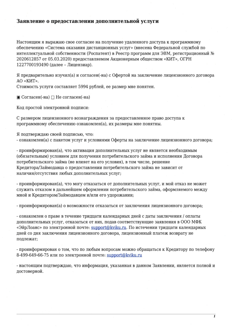 При оформлении кредита или займа заемщики часто сталкиваются с появлением в чеке непонятных сумм. Вместе с машиной или деньгами вам могут «продать» сертификаты, QR-коды или доступы к онлайн-платформам. Одна из таких услуг — лицензионный договор от АО «КИТ» (сервис Click IT).