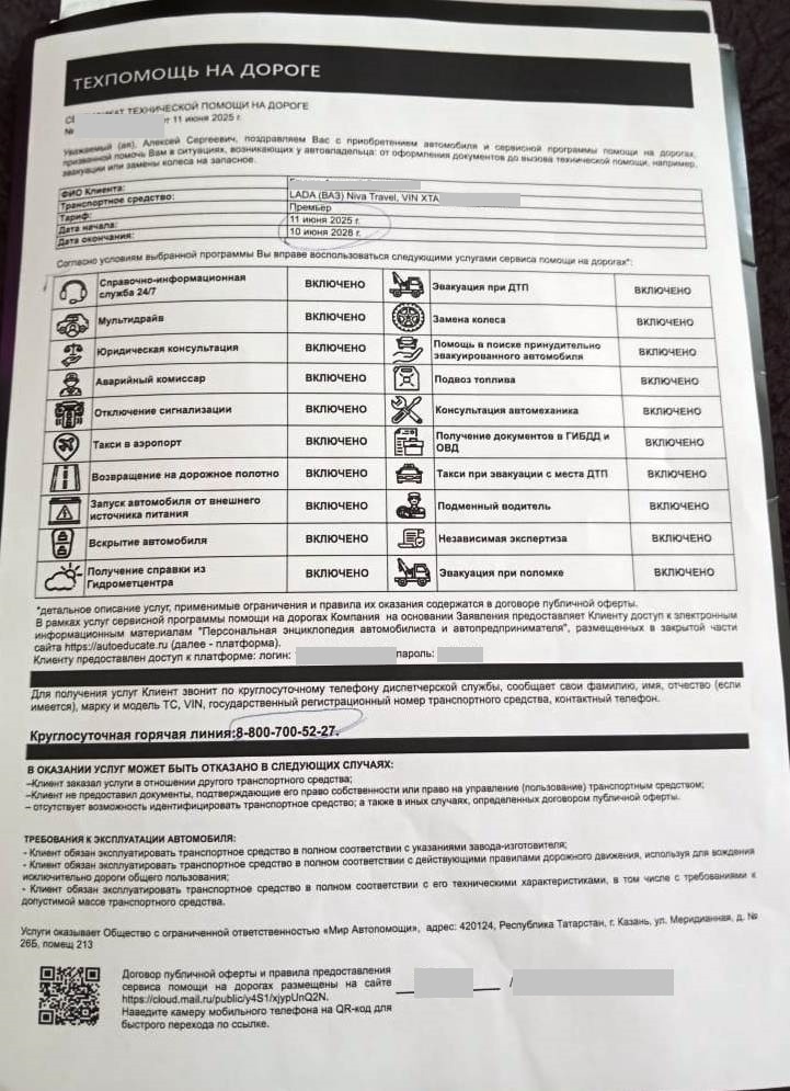 Среди навязанных услуг при покупке автомобиля или оформлении автокредита часто встречается сертификат технической помощи на дорогах от ООО «Мир автопомощи».