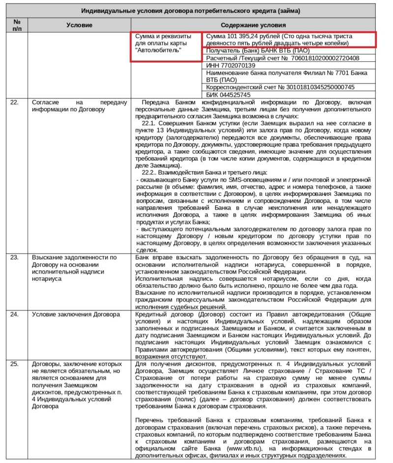 💳 Вместе с кредитом была оформлена карта «Автолюбитель» стоимостью 101 395,24 ₽, включённая в сумму займа.