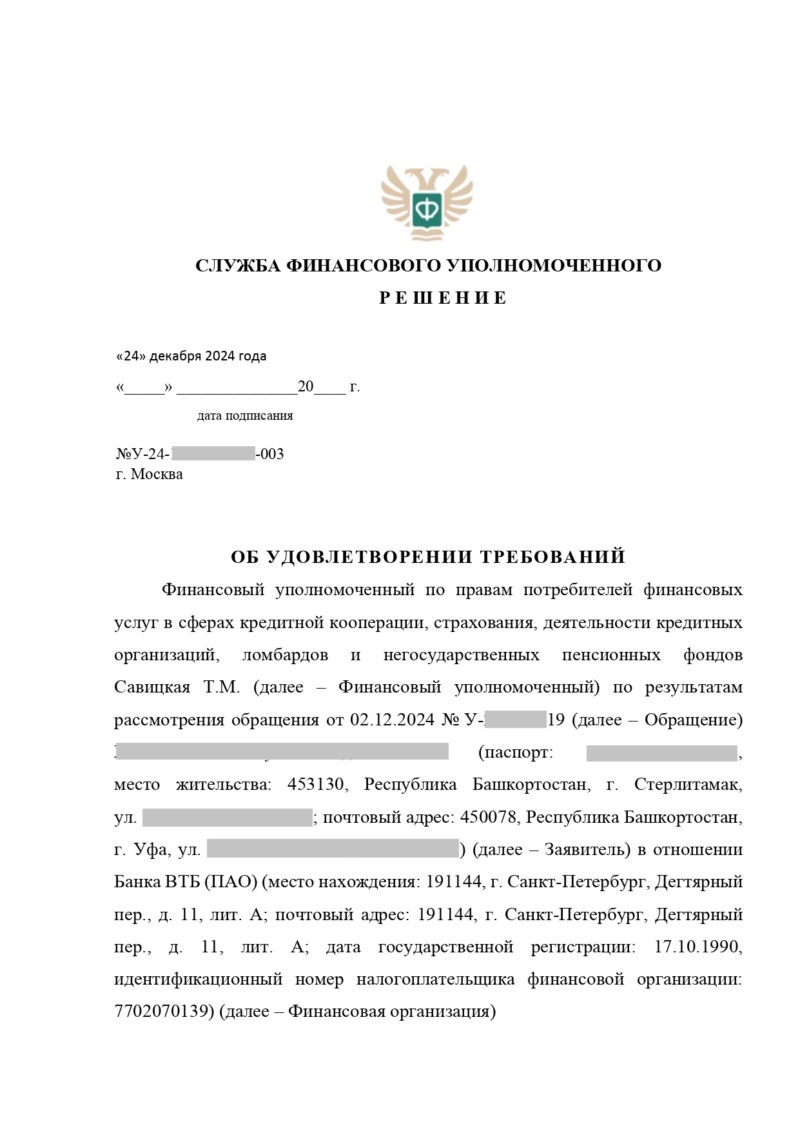 📄 24.11.2024 — клиент подал обращение в АНО «СОДФУ».