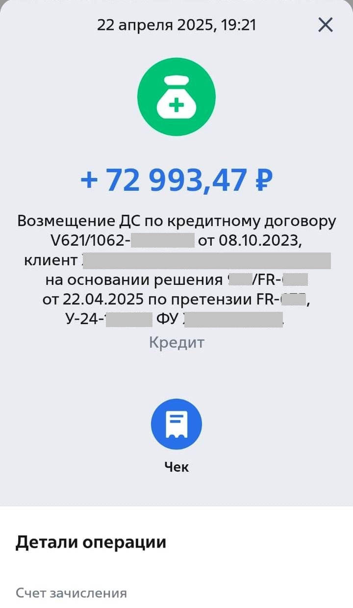 💵 22.04.2025 — ВТБ перечислил деньги клиенту.
