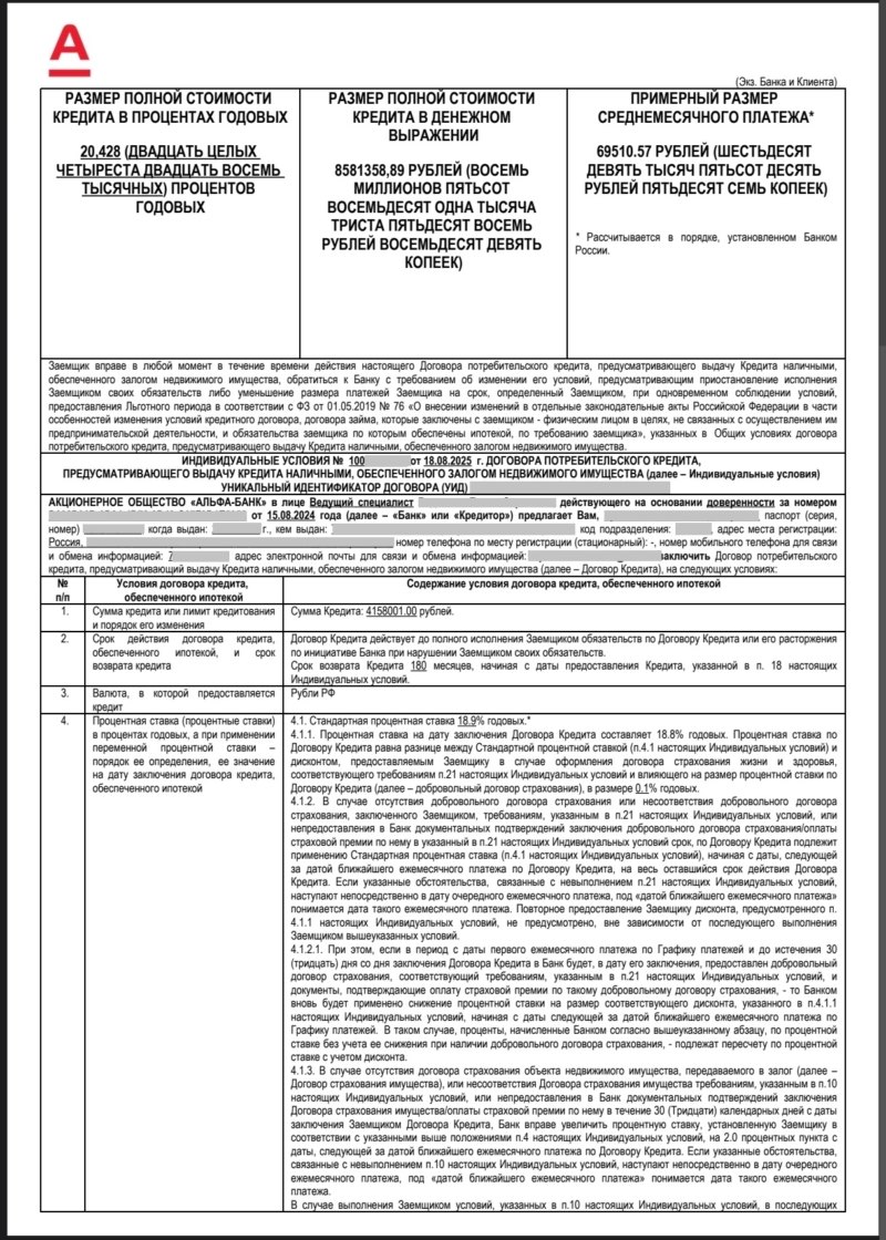 18.08.2025 клиент взял кредит в АО «Альфа-Банк».