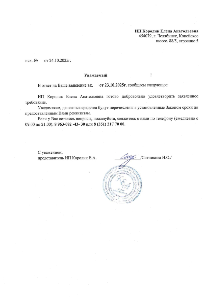 Алгоритм возврата денег от ИП Королик Е.А. шаг за шагом
