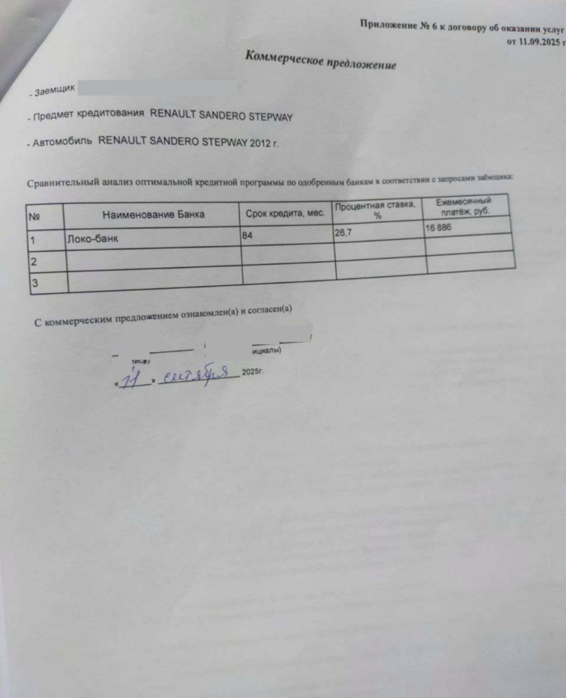 Посредник работает с клиентами, оформляющими кредиты на автомобиль, и берет отдельную плату за услуги “подбора” кредитных продуктов.