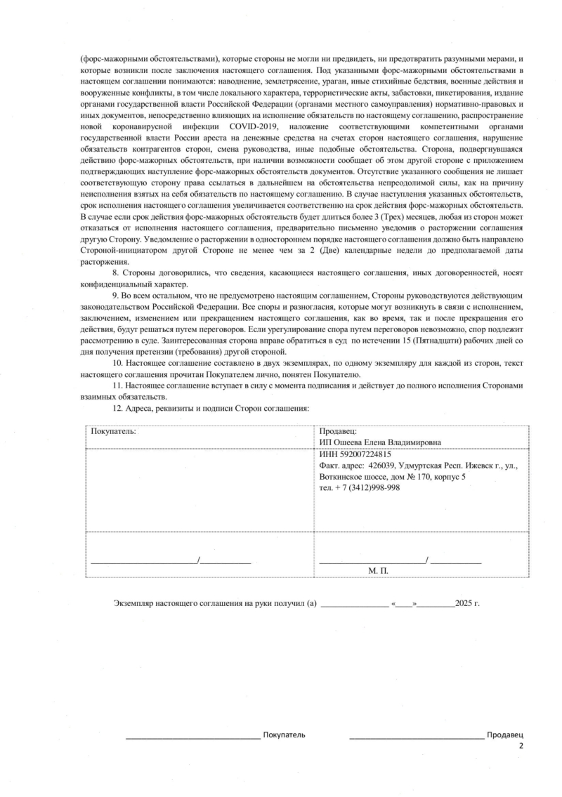Индивидуальный предприниматель: Ошеева Елена Владимировна