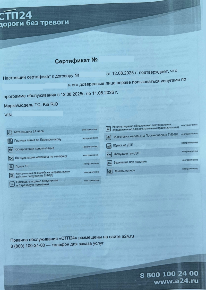 Компания работает с 2008 года и специализируется на услугах технической помощи на дорогах по абонентскому принципу. Клиенту предлагают сервис сопровождения в пути, а факт подключения оформляют сертификатом с перечнем опций и ссылкой на правила обслуживания.