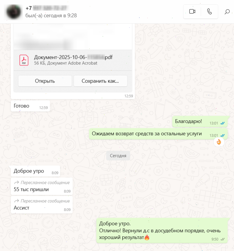 По трек-номеру отслеживайте дату вручения письма – с неё отсчитываются все последующие сроки. По практике, компания возвращает средства в досудебном порядке.