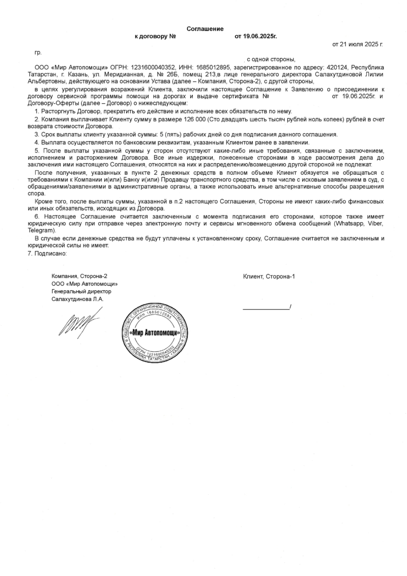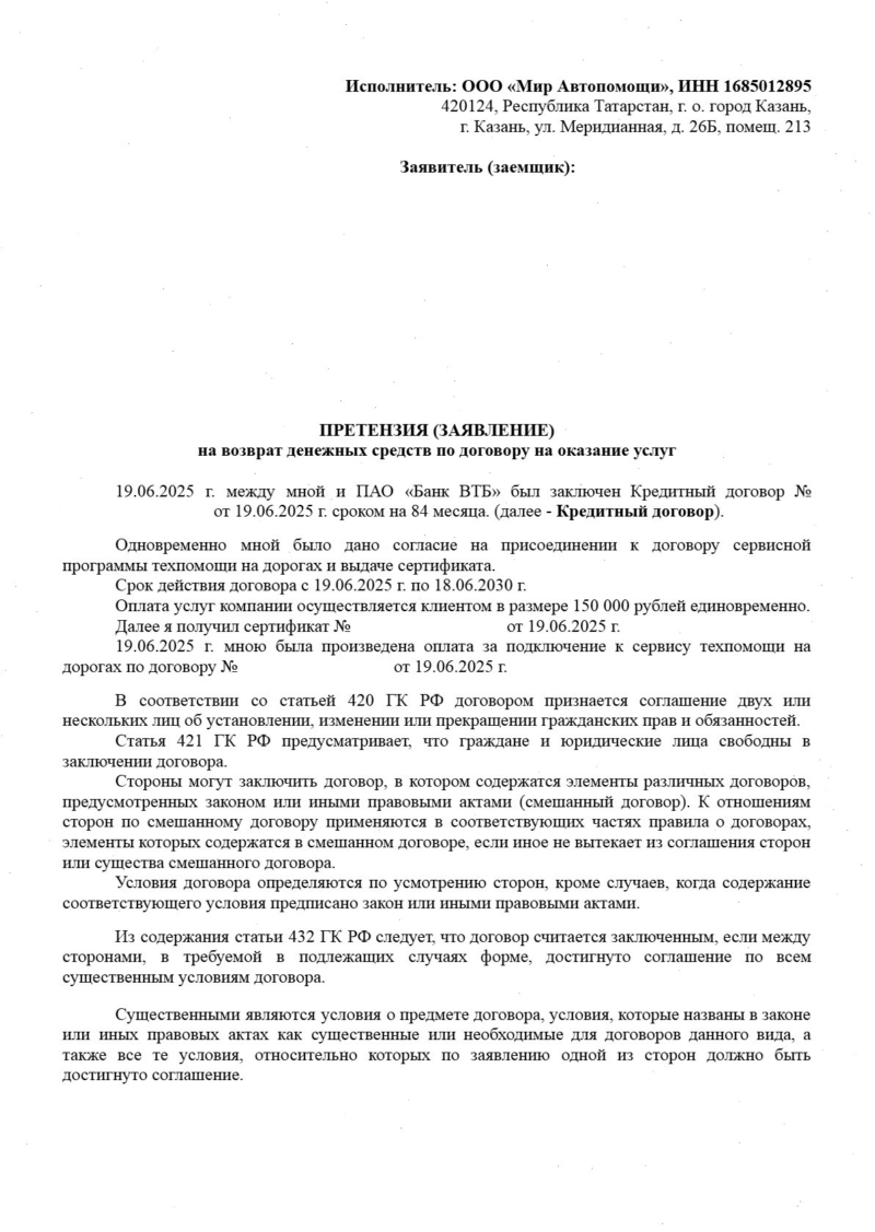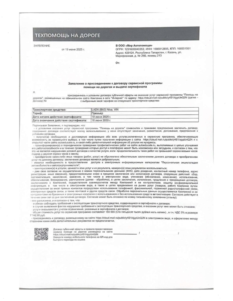 Отказ от сертификата технической помощи на дороге от ООО “Мир Автопомощи” – это ваше законное право. Чем быстрее вы зафиксируете отказ и отправите грамотную претензию, тем выше шанс: