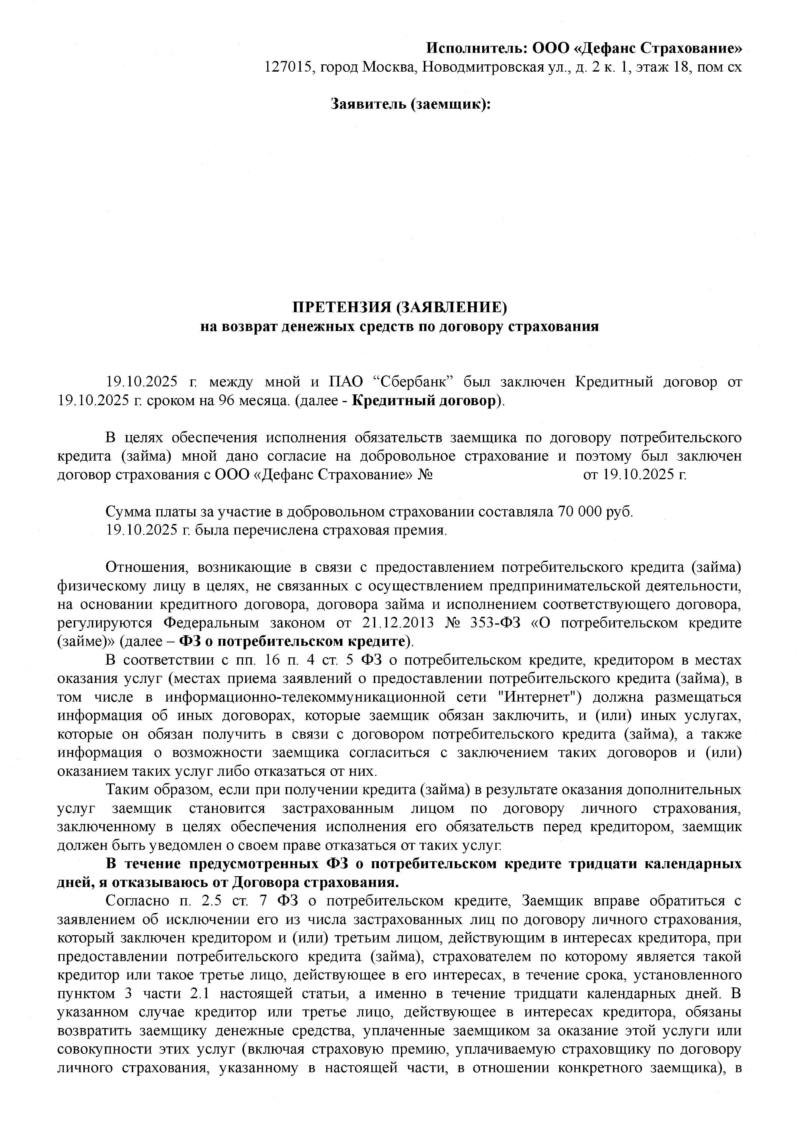 Возврат страховки из ООО «Дефанс Страхование» (ООО СК «КАРДИФ») – процедура реальная и рабочая, если соблюдать сроки и правильно оформлять документы. При грамотном подходе вы сможете вернуть значительную часть потраченных средств и снизить стоимость кредита.