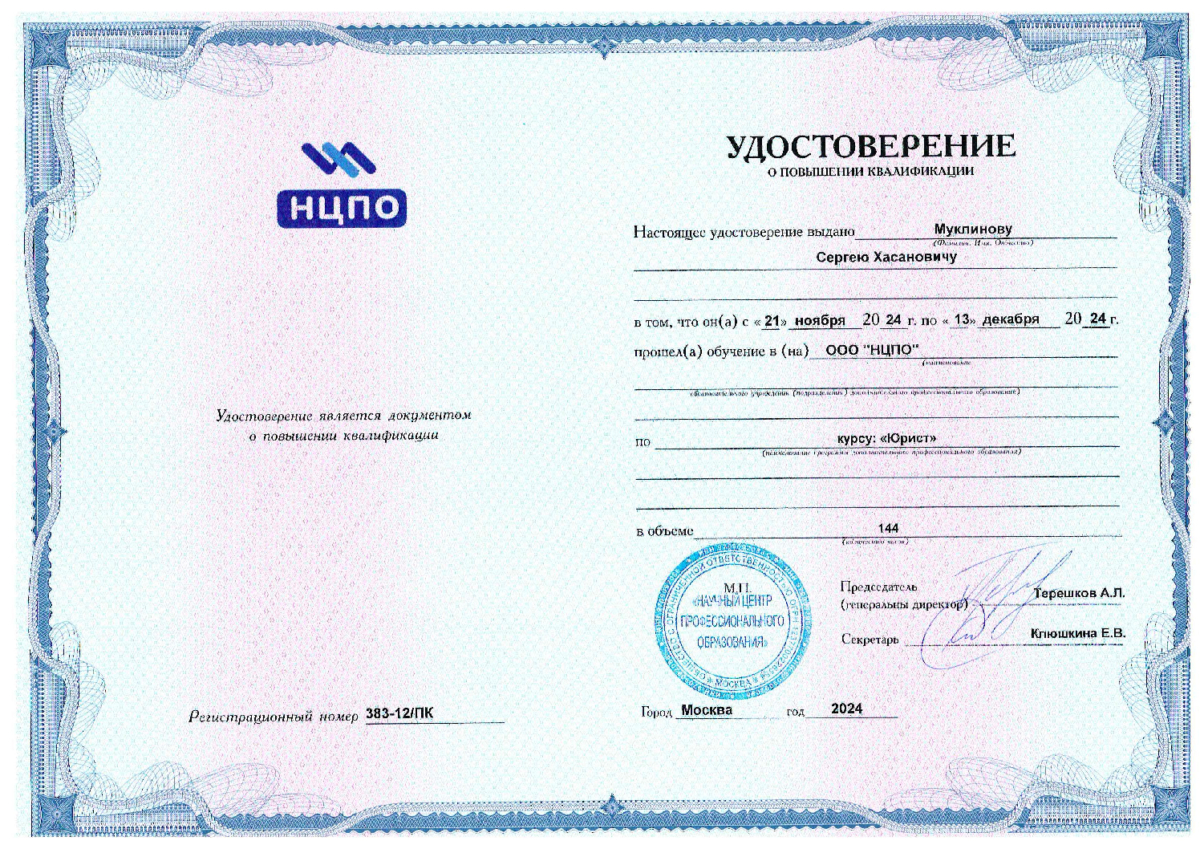 Обладаю практическими знаниями и многолетним успешным опытом работы в различных областях права, включая уголовное, гражданское, семейное, трудовое, административное и налоговое право. Осуществляю представительство в судах общей юрисдикции и в арбитраже. Осуществляю защиту на ЛЮБОЙ стадии уголовного производства. Подготовка и подача кассационной жалобы в Первый кассационный суд общей юрисдикции, в Верховный суд РФ, а также представление интересов на стадии кассационного обжалования. Имею значительный опыт в подготовке и составлении ходатайств о замене наказания более мягким видом, об условно-досрочном освобождении, о досрочном снятии судимости. Имеется успешный многолетний опыт переговоров на досудебной стадии разрешения споров, в том числе, споров, связанных с расторжением брака, разделом совместно нажитого имущества супругов, определением порядка общения с ребенком, определением долей в наследстве. Ведение переговоров в рамках разрешения корпоративных споров.