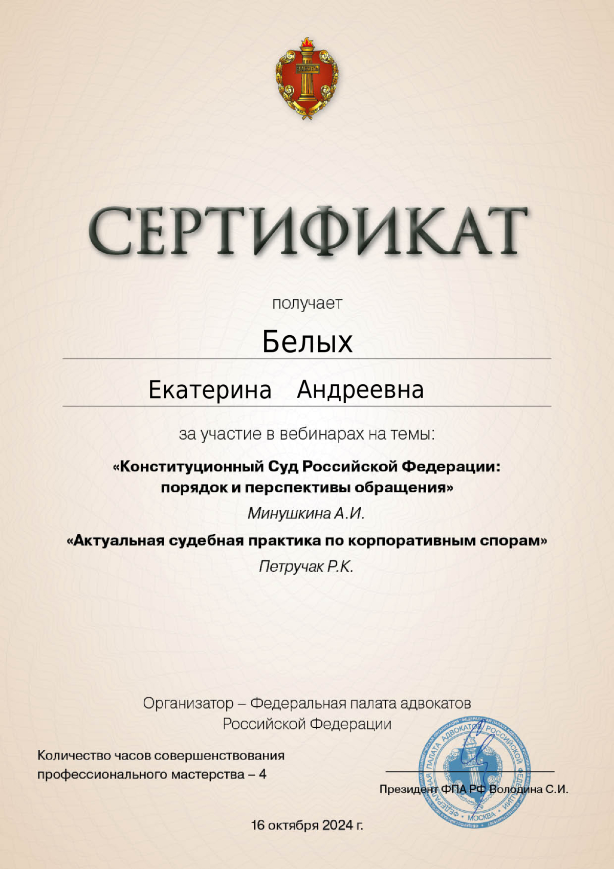 Оказываю юридическую помощь в подготовке правовой документации (исковые заявления, претензии, жалобы, ходатайства и др.), а также полное сопровождение дела в суде. Сотрудничество со мной поможет Вам в ходе консультации определиться в самой ситуации, оценить шансы на положительный исход и целесообразность действий. Мы выберем наиболее подходящие для Ваших интересов решения, исходя из действующего законодательства. В процессе сотрудничества Вы получаете комфортные условия и индивидуальный подход.