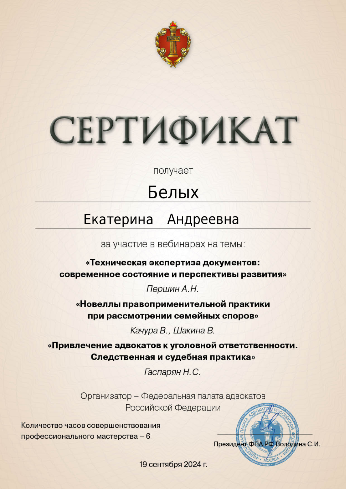 Предлагаю оказание квалифицированной юридической помощи, представлен широкий спектр услуг. Статус адвоката позволяет обеспечить защиту по уголовным делам, большой опыт работы с предпринимателями поможет в решении проблем бизнеса, в том числе посредством представления интересов в арбитражных судах. Кроме того, представляю интересы в гражданских делах, сферой профессиональных интересов являются семейные и наследственные споры. Занимаюсь оформлением сделок под ключ - от составления всей необходимой документации (договоров, актов, согласий на сделку и пр.) до сопровождения в гос.органах и кадастровых центрах.