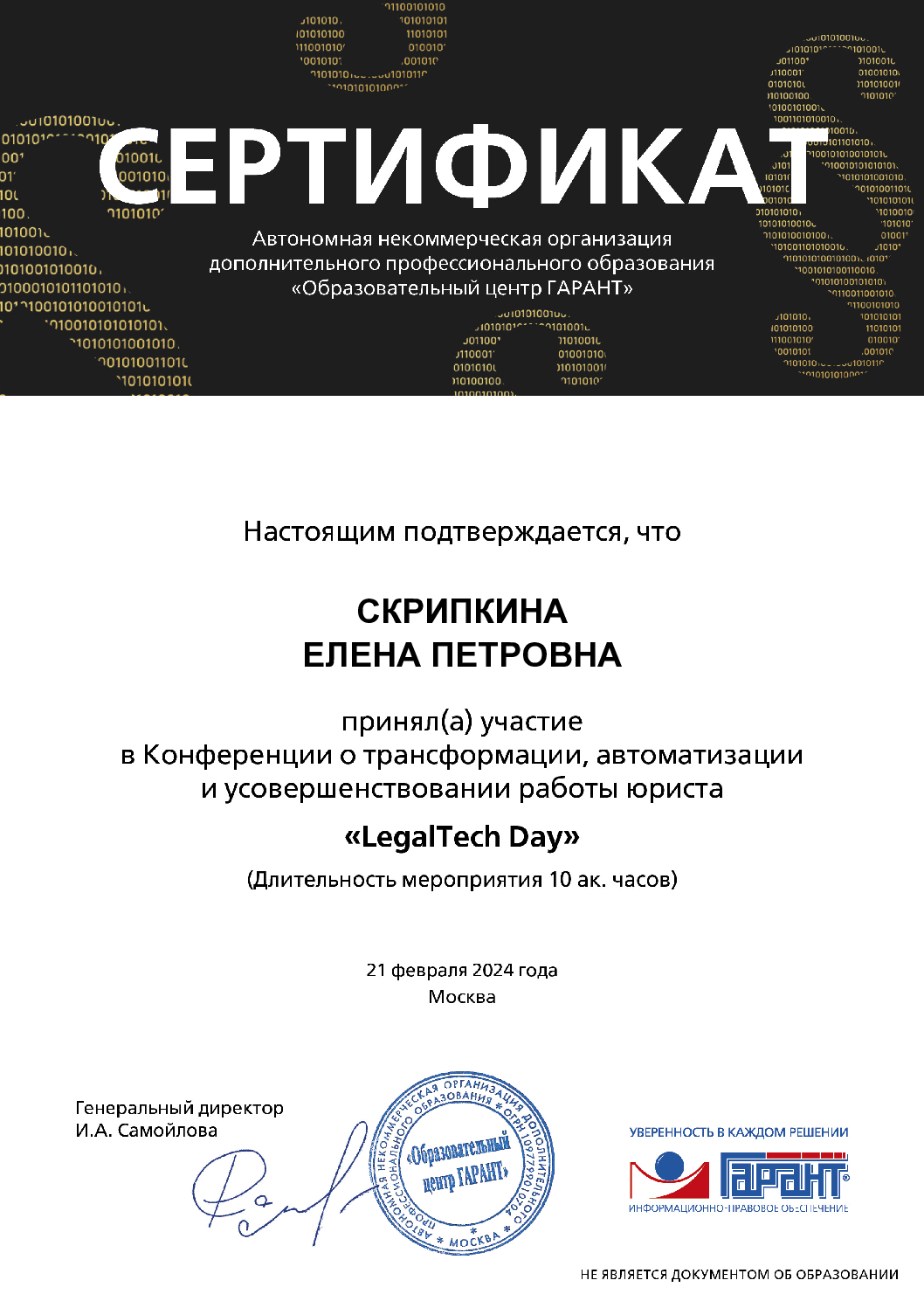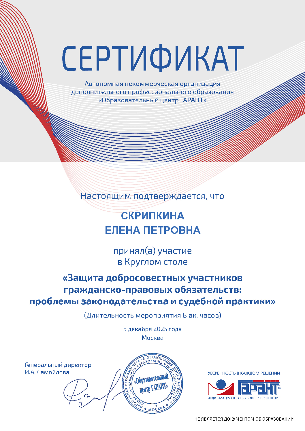 Здравствуйте! Занимаюсь практической деятельностью в юриспруденции с 2008 года. С 2016 года являюсь адвокатом, состою в адвокатской конторе "Право и Бизнес", которая имеет 22-летний опыт работы по защите прав и интересов доверителей в различных областях права. Нередко бывают жизненные ситуации, требующие знания не только по узкой специализации и проблематике, но и пересекающиеся с гражданским, административным и уголовным правом, иными отраслями права. Мы предоставляем квалифицированную юридическую помощь для физических и юридических лиц, обладаем опытом работы с гражданским, административным и уголовным законодательством, что позволяет эффективно решать сложные юридические вопросы и поставленные задачи. Гарантируем полную конфиденциальность информации клиента в соответствии с нормами адвокатской тайны. В своей работе придерживаемся честности во взаимоотношениях с доверителями, точности и внимательного подхода к деталям дела. Уверены, что на любой вопрос возможно найти ответ. Готовы выполнять отдельные поручения, временно замещать отсутствующих специалистов или обеспечивать постоянную занятость в интересах клиента.