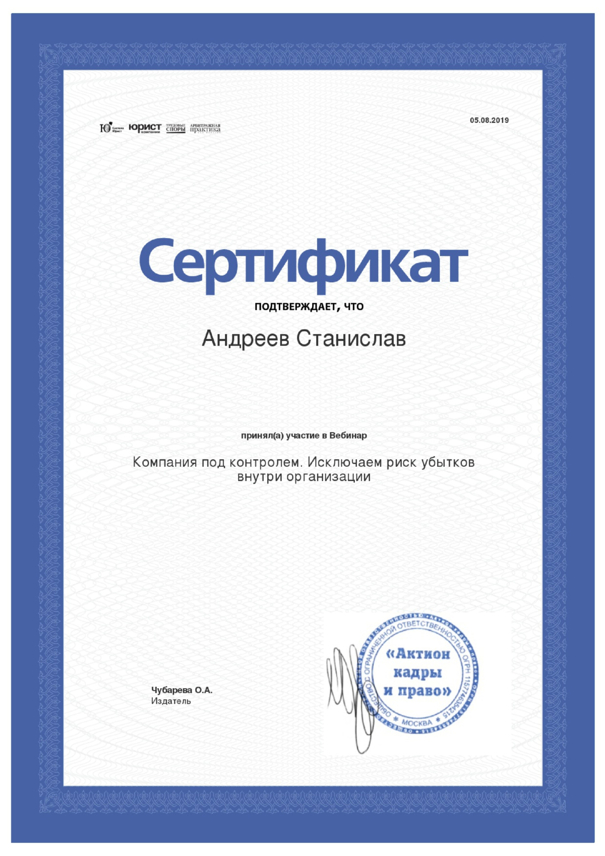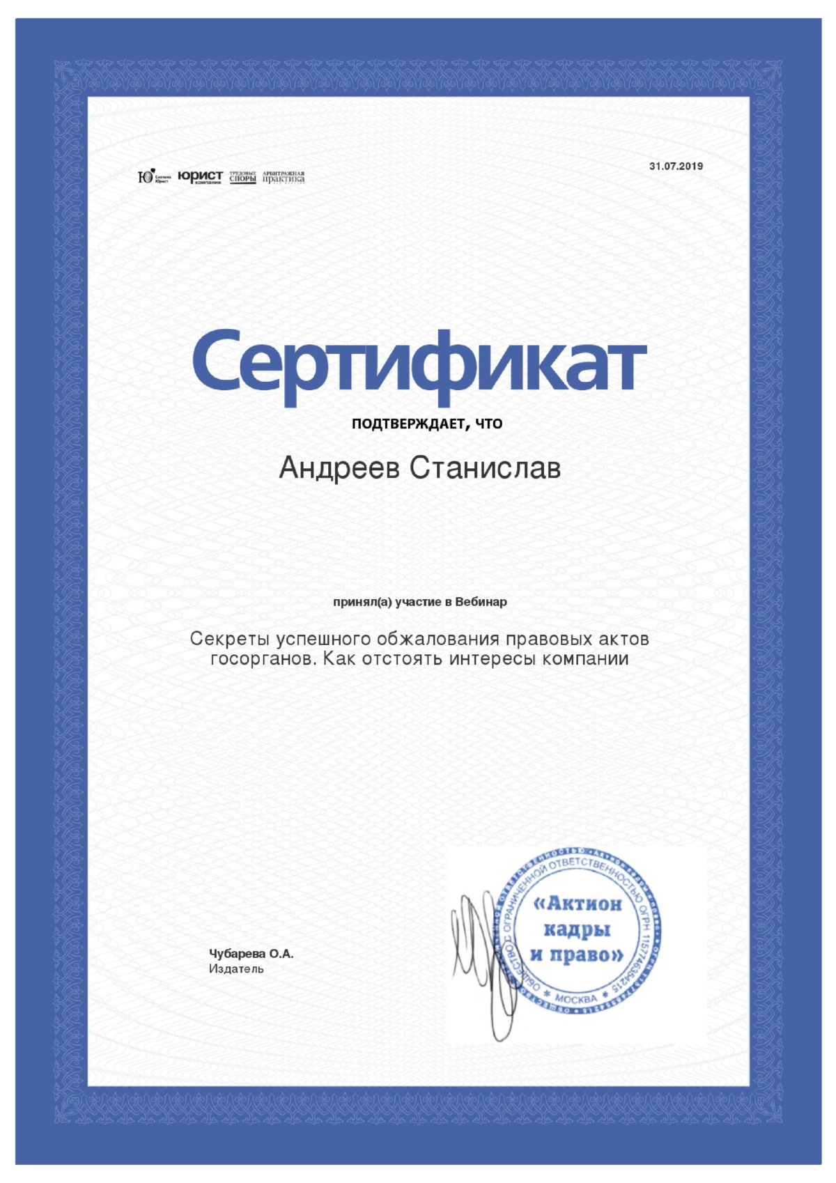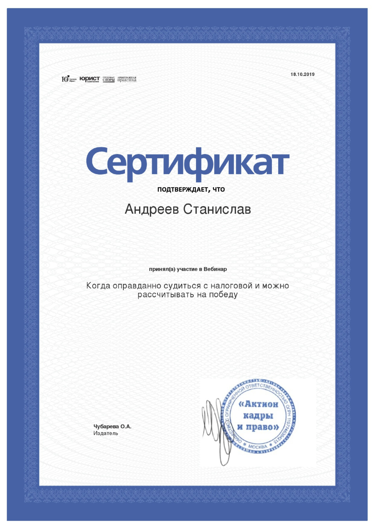 Хочу выразить благодарность Станиславу за грамотно и профессионально выполненную работу! Благодаря ему выиграли процесс в Арбитражном с... Читать далее