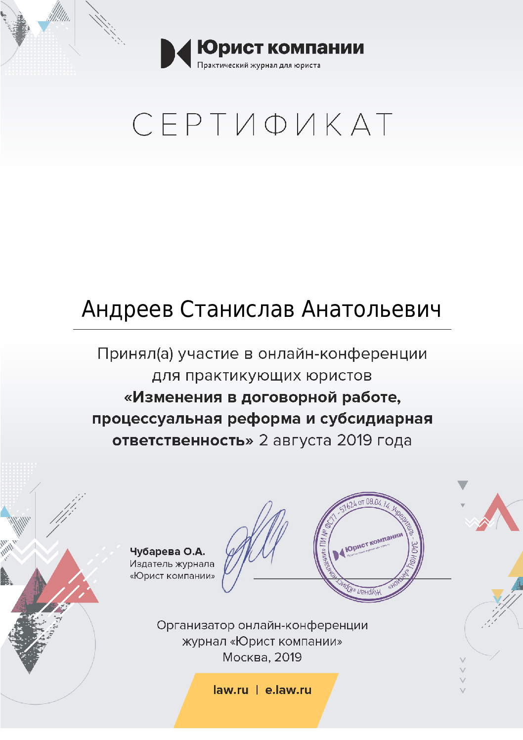«Изменения в договорной работе, процессуальная реформа и субсидиарная ответственность» - Москва