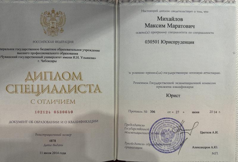 Здравствуйте. Меня зовут Михайлов Максим Маратович. Я — профессиональный адвокат. Стаж работы по юридической специальности с 2014 года.