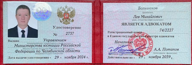 Член Адвокатской палаты Челябинской области. Оказываю квалифицированную юридическую помощь.