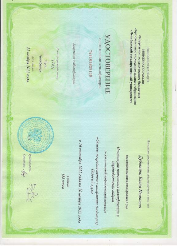 - Здравствуйте, меня зовут Алёна Ивановна Дубынина — я юрист по семейным делам и профессиональный медиатор. Магистр юридических наук, успешно защитила диссертацию на тему “Право общей совместной собственности супругов”. Частный юрист. Все дела веду лично. Работаю из Челябинска, очно и дистанционно по всей России УСЛУГИ, которые я оказываю: 1) Семейная медиация 2) Юридические онлайн-консультации ( по вопросам расторжения брака, алиментам, спорам по детям, разделу имущества, брачному договору, выделению долей в маткапитале, ипотеке) 3) Представительство в суде. 4) Подготовка документов в суд: ✅ расторжение брака ✅ раздел совместно нажитого имущества супругов в досудебном и судебном порядке ✅ составление брачного договора ✅ взыскание алиментов и неустойки по алиментам ✅ установление (оспаривание) отцовства ✅ работа с судебными приставами по взысканию алиментов ✅ определение места жительства, порядка общения с ребенком ✅ ограничение и лишение родительских прав