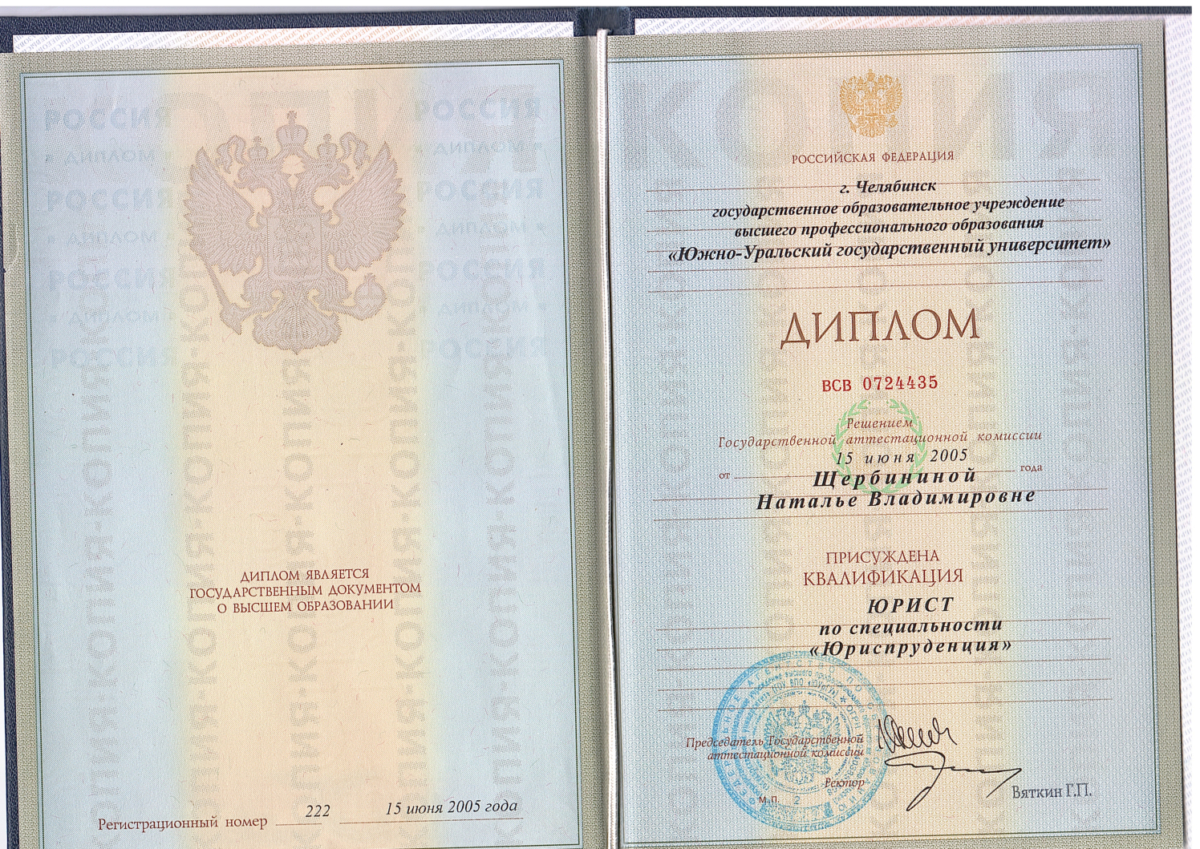 Наталья Владимировна Кальчик. В 2005 году закончила ЮУрГУ, специальность: юриспруденция гражданско-правовая, квалификация: юрист. Начала свою карьеру с должности государственного гражданского служащего в Управлении Росреестра по Челябинской области, где прослужила более 10 лет Прошла путь от специалиста 1 разряда отдела приема и выдачи документов и информации до ведущего специалиста — эксперта, государственного регистратора, имею классный чин: референт государственной гражданской службы Российской Федерации 1 класса, где получила огромный опыт в сфере юриспруденции. Неоднократно обучалась на курсах повышения квалификации в Российской правовой академии Министерства юстиции Российской Федерации. С 2017 года работала помощником адвоката и ведущим юристом в крупной юридической компании. Прежде чем приступить к вашему делу, я провожу правовой анализ вашей ситуации, изучаю имеющиеся документы, судебную практику по данному вопросу и совместно с вами оцениваем шансы решения вашего вопроса