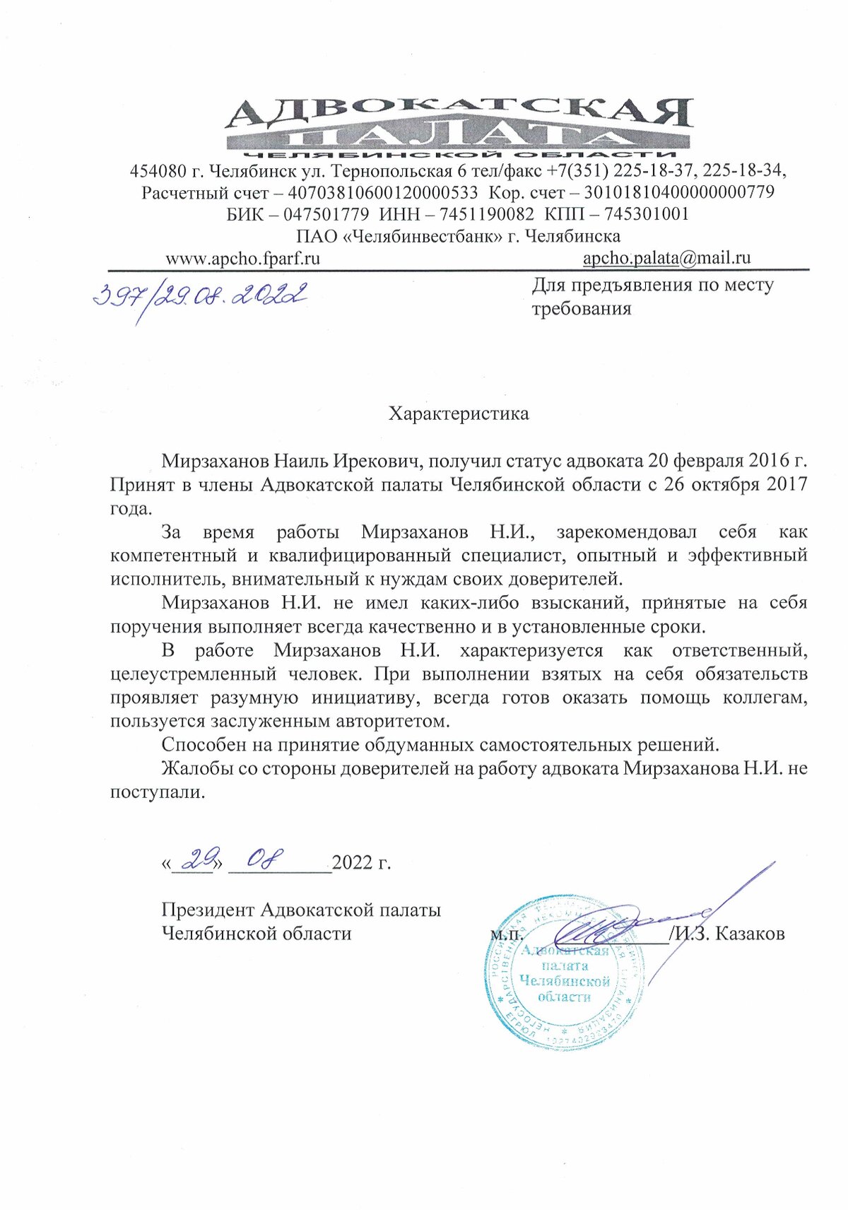Список судебных дел в карточке адвоката может быть не полным и зависит от того, указан ли адвокат Мирзаханов Наиль Ирекович в деле или нет