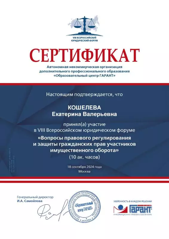 С уважением, юрист Кошелева Екатерина