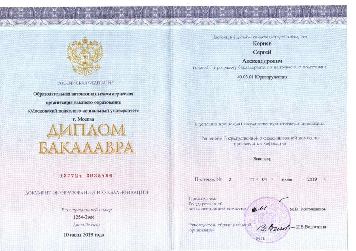 У меня высшее юридическое образование и более 18 лет практического опыта в сфере оказания юридических услуг.