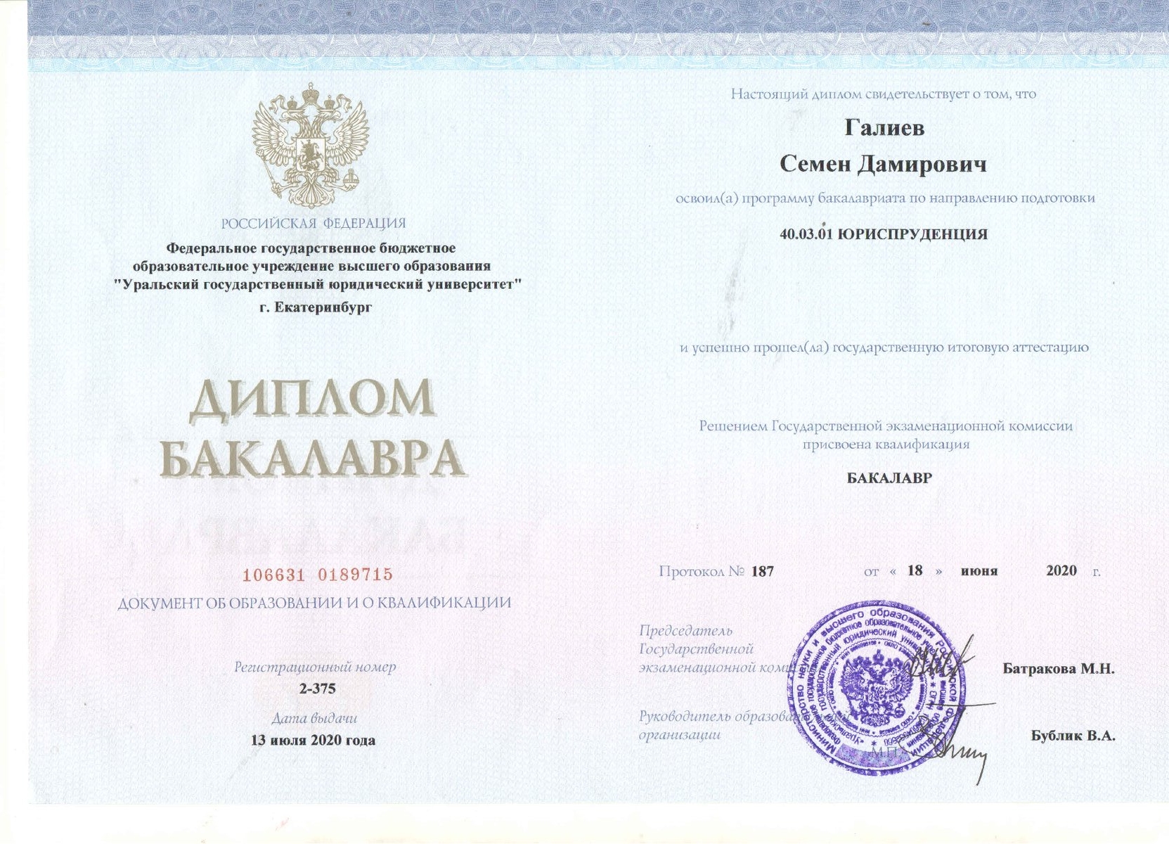 🎓 Образование: УрГЮУ (бывш. УрГЮА)