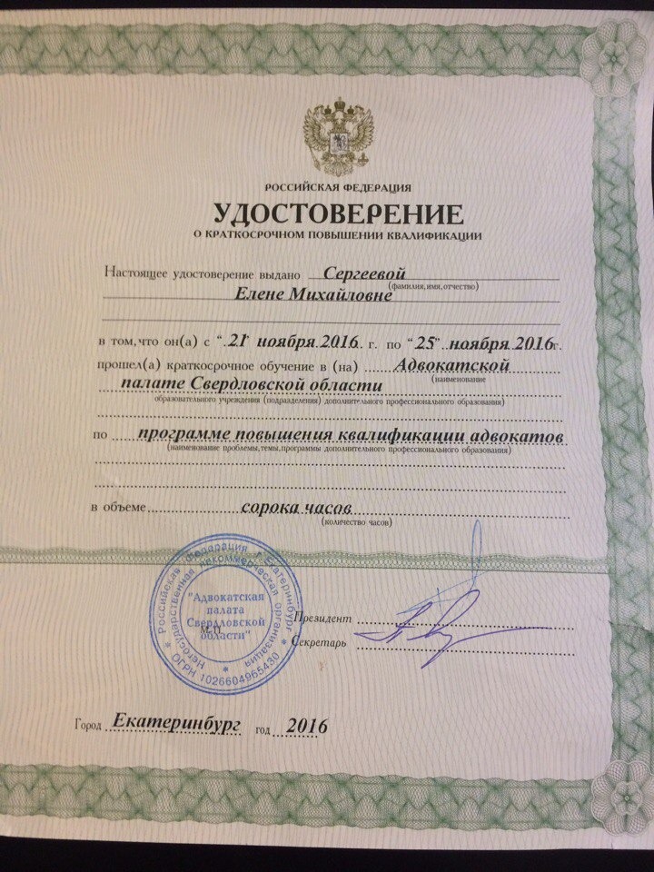 Список судебных дел в карточке адвоката может быть не полным и зависит от того, указан ли адвокат Сергеева Елена Михайловна в деле или нет