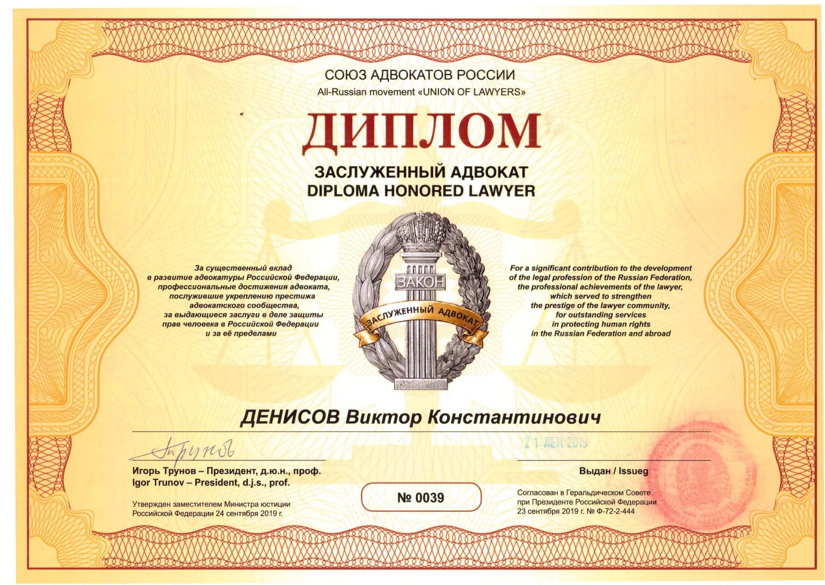 Документы не провереныСписок судебных дел в карточке адвоката может быть не полным и зависит от того, указан ли адвокат Денисов Виктор Константинович в деле или нет