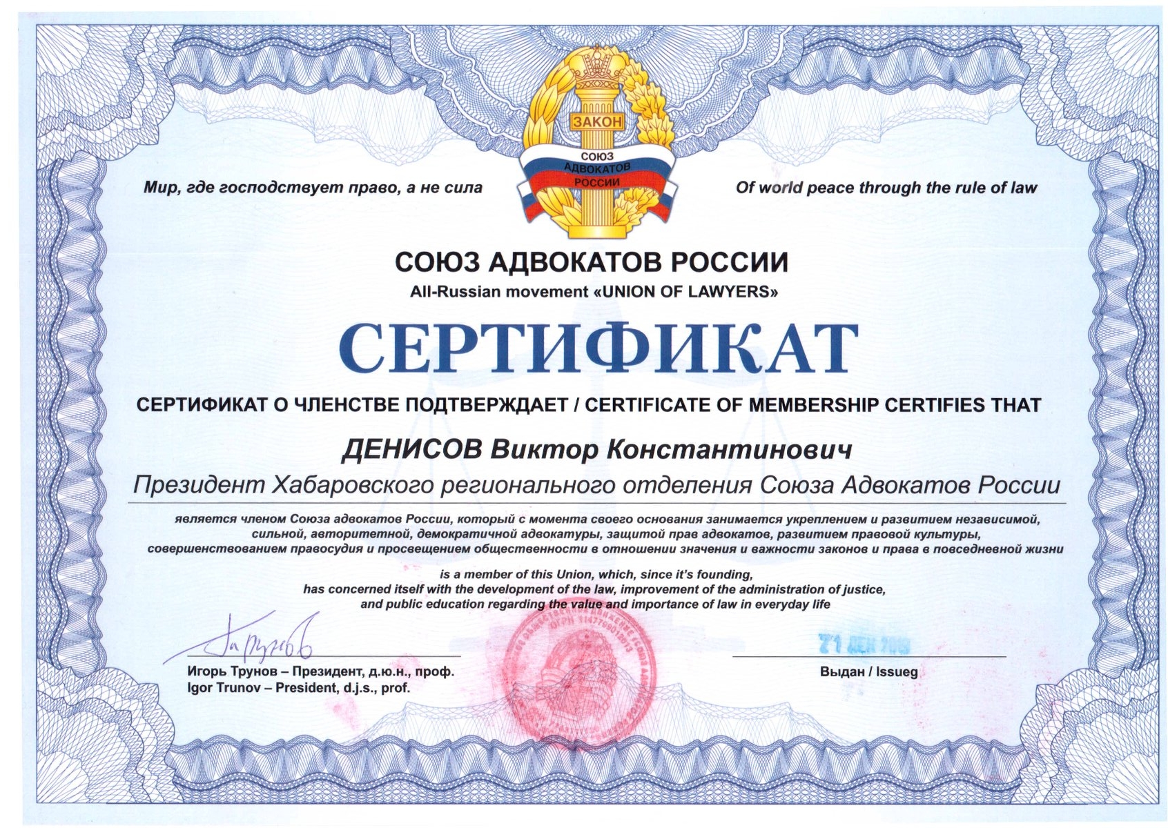 Регистрационный номер 27/1020 в реестре адвокатов Хабаровского края.