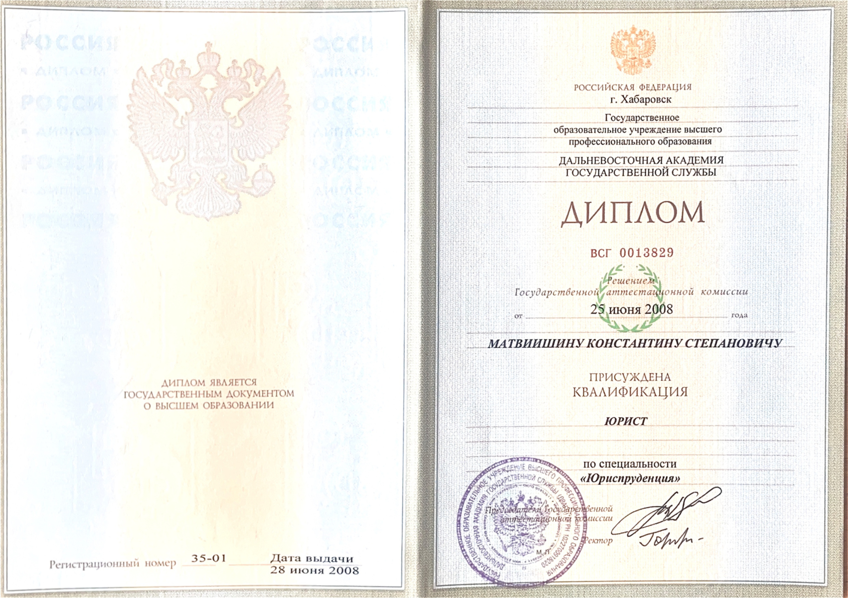 Общий юридический стаж составляет 19 лет, из них более 16 лет я занимаюсь уголовно-правовой практикой. Я не просто юрист широкого профиля, а квалифицированный специалист в области уголовного права и процесса, знающий все его нюансы.