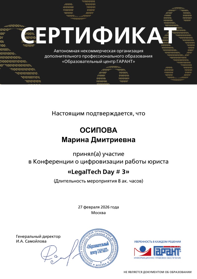 💬 В работе считаю важным не только знание закона, но и умение вести переговоры, убеждать и находить гибкие решения.