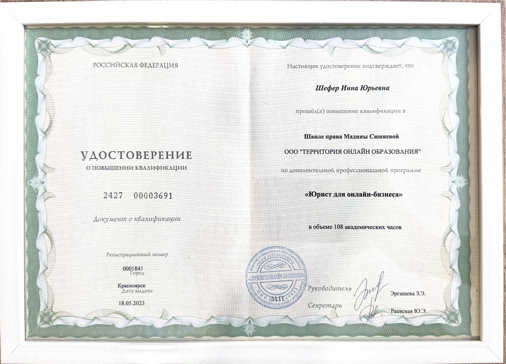 Здравствуйте! Меня зовут Федосеева Алена Владимировна, я основатель и руководитель Юридического агентства «Вектор Права». У меня более 20 лет опыта в юридической и судебной практике. Я оказываю юридические услуги по семейным, жилищным, наследственным спорам, спорам с недвижимостью, а также защите прав потребителей в Калининграде и области. Работаю как офлайн, так и онлайн. Стоимость услуг зависит от сложности дела и определяется на консультации. Работаю официально по договору, предлагаю гибкую систему оплаты и возможность рассрочки. Мои принципы работы: - Я юрист по призванию и имею огромное количество выигранных дел. - Борюсь за каждое дело и гарантирую качественные юридические услуги. - Не обнадеживаю без оснований: если шансы на победу малы или результат труднодостижим, вы узнаете об этом заранее. - Не навязываю лишние услуги и всегда называю конечную стоимость. Я сопровождаю клиентов от начала до конца, обеспечивая надежную защиту и безопасное прохождение через все этапы судебной системы. Поскольку я заинтересована в результате, веду дела исключительно «под ключ» и не участвую в разовых судебных заседаниях. Консультация проводится по предварительной записи по телефону.