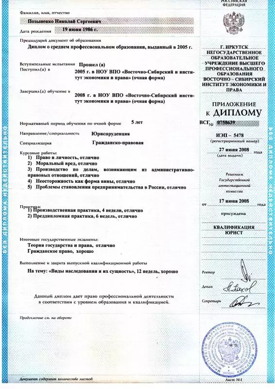 Николай Позыненко — опытный юрист и адвокат, который зарекомендовал себя в юридической сфере благодаря своему профессионализму и преданности делу. Он активно работает в Иркутске, где предоставляет широкий спектр юридических услуг, включая защиту интересов клиентов в суде и консультации по различным правовым вопросам.