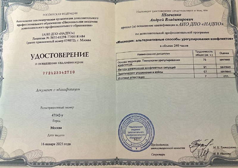 Адвокат оказывает помощь по гражданским и уголовным делам, арбитражным спорам.