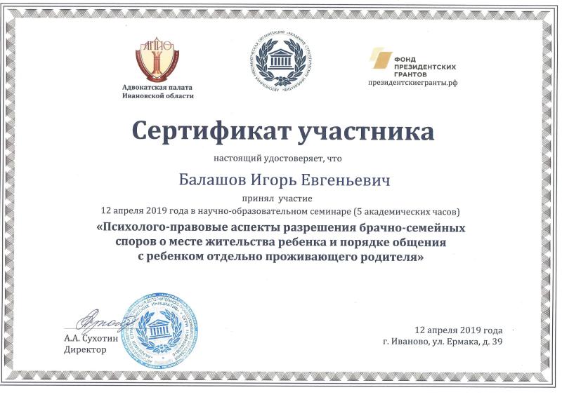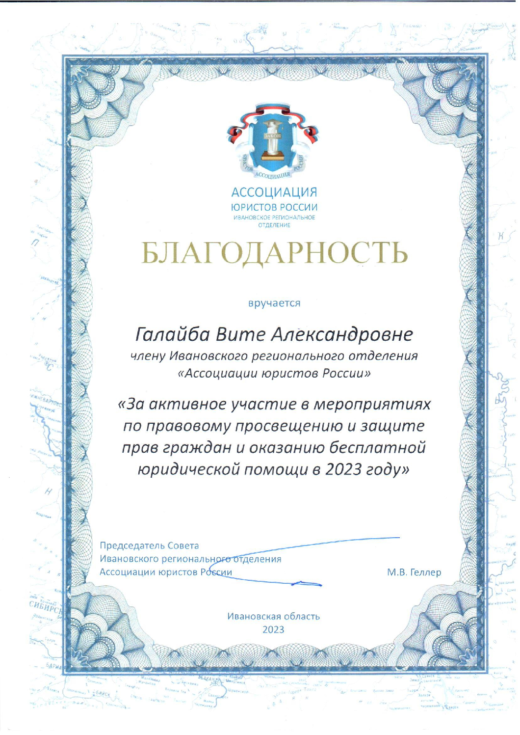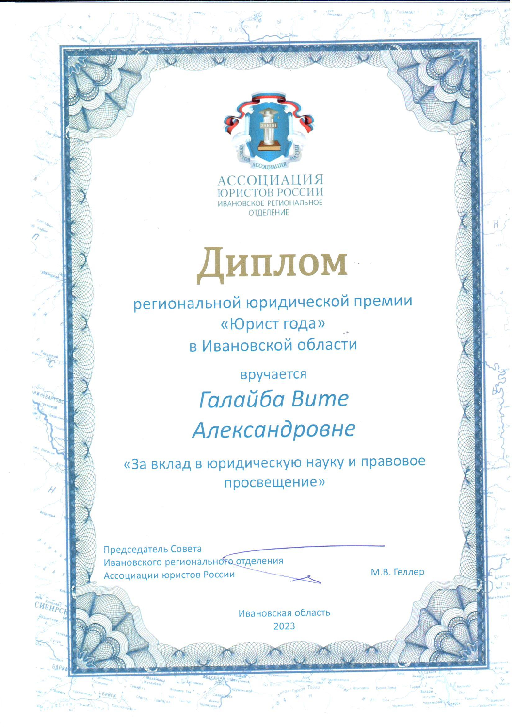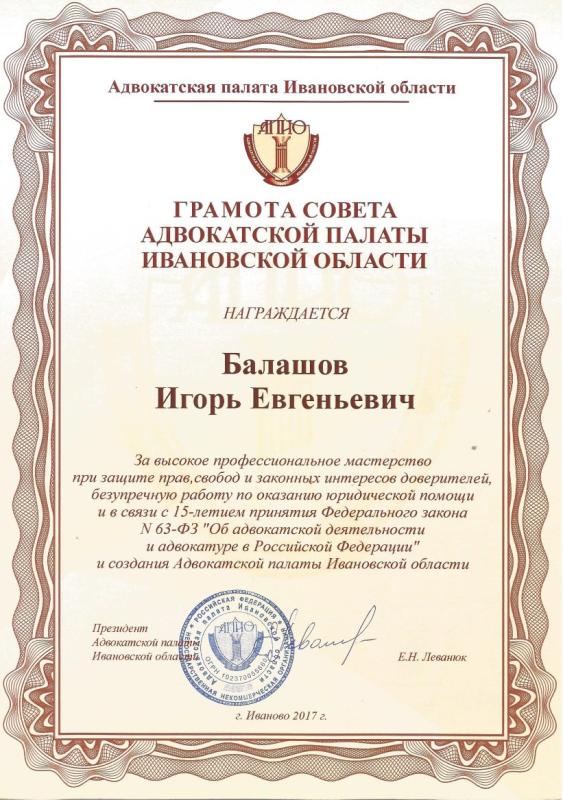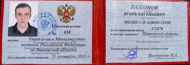 Член Адвокатской Палаты Ивановской области.