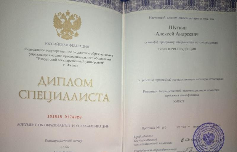 Окончил Удмуртский государственный университет по специальности «Юриспруденция»....
