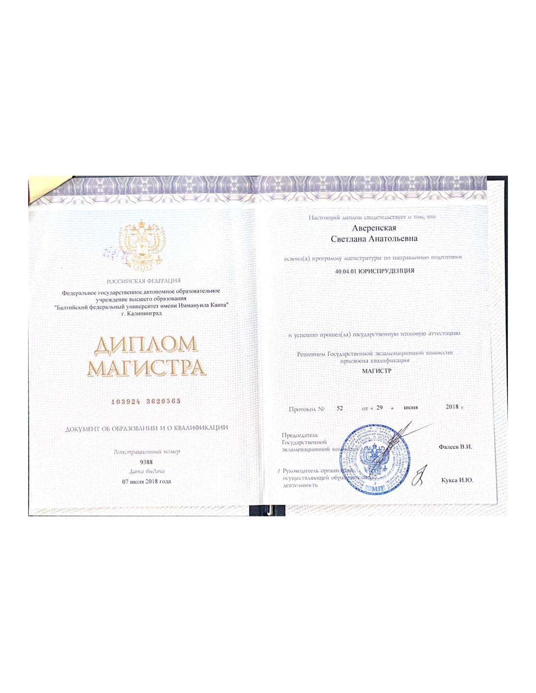 Балтийский Федеральный Университет им. Иммануила Канта — Юридический факультет — Калининград Специалист