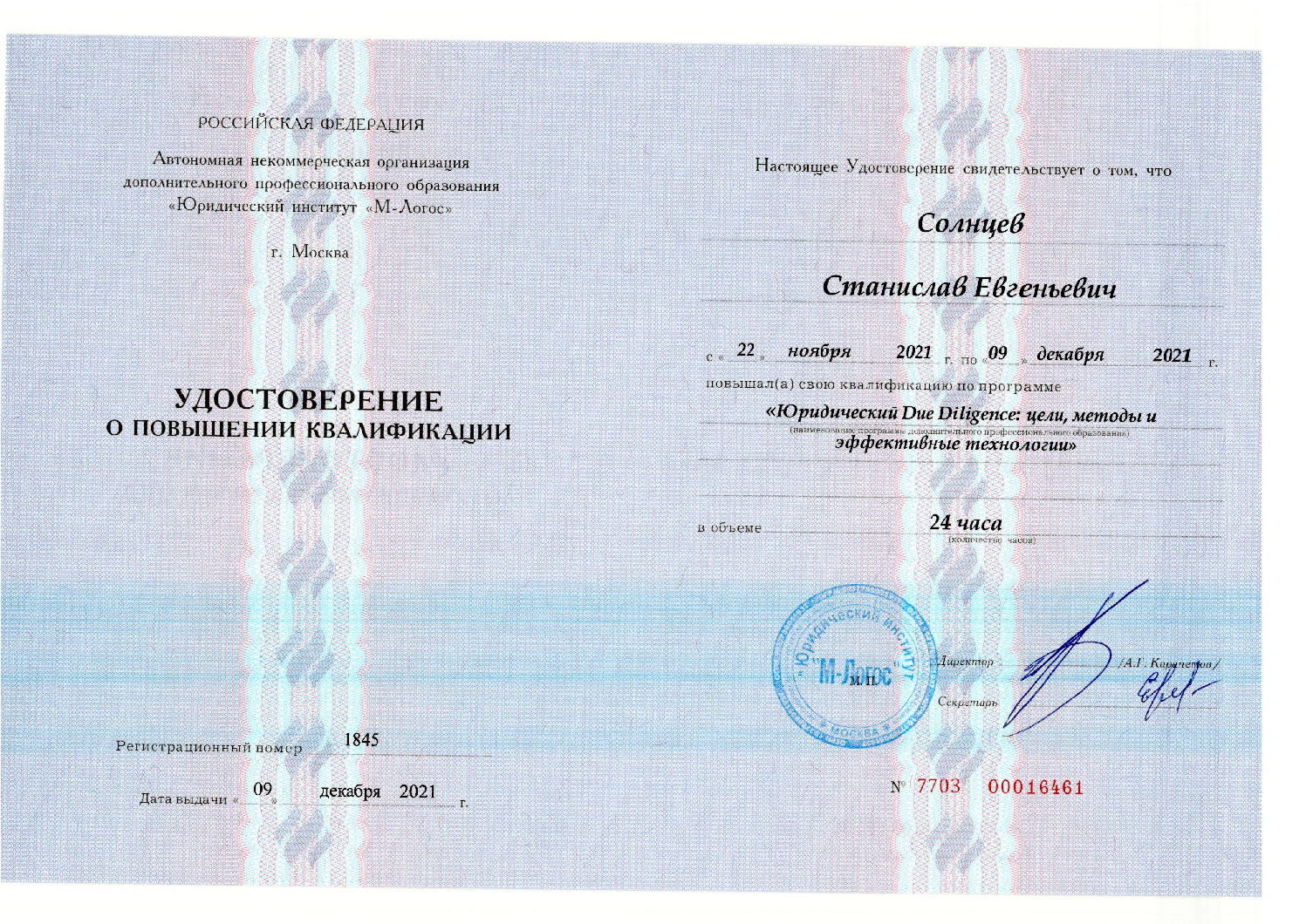 Управляющий партнёр юридической фирмы "Солнцев и партнёры", юрист, патентный поверенныйпатентный поверенный РФ №2470;эксперт, аккредито... Читать еще