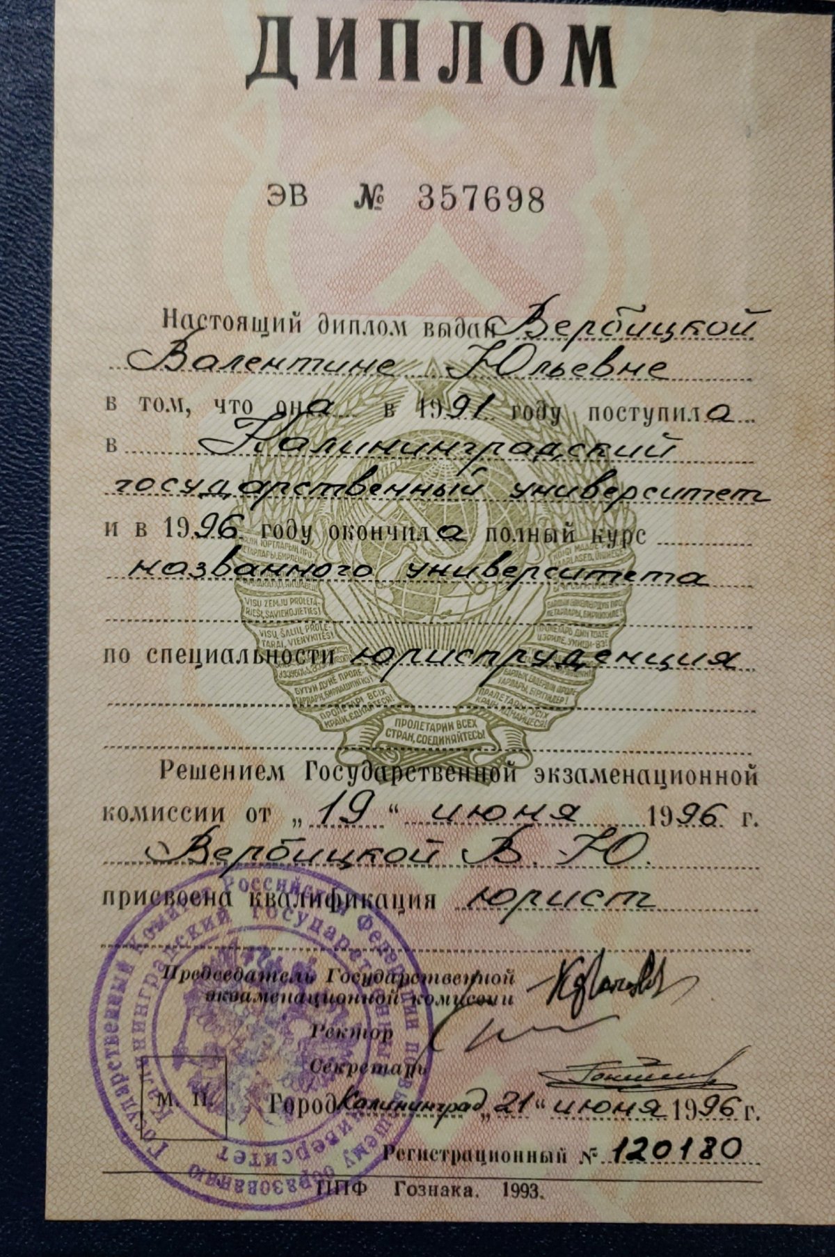 Окончила юридический факультет Калининградского государственного университета в 1991 году. Специализируется в области гражданского права, включая семейное, земельное, наследственное и жилищное право. Также обладает опытом в арбитражном праве, решении хозяйственных и экономических споров, а также споров, связанных с Законом о защите прав потребителей.