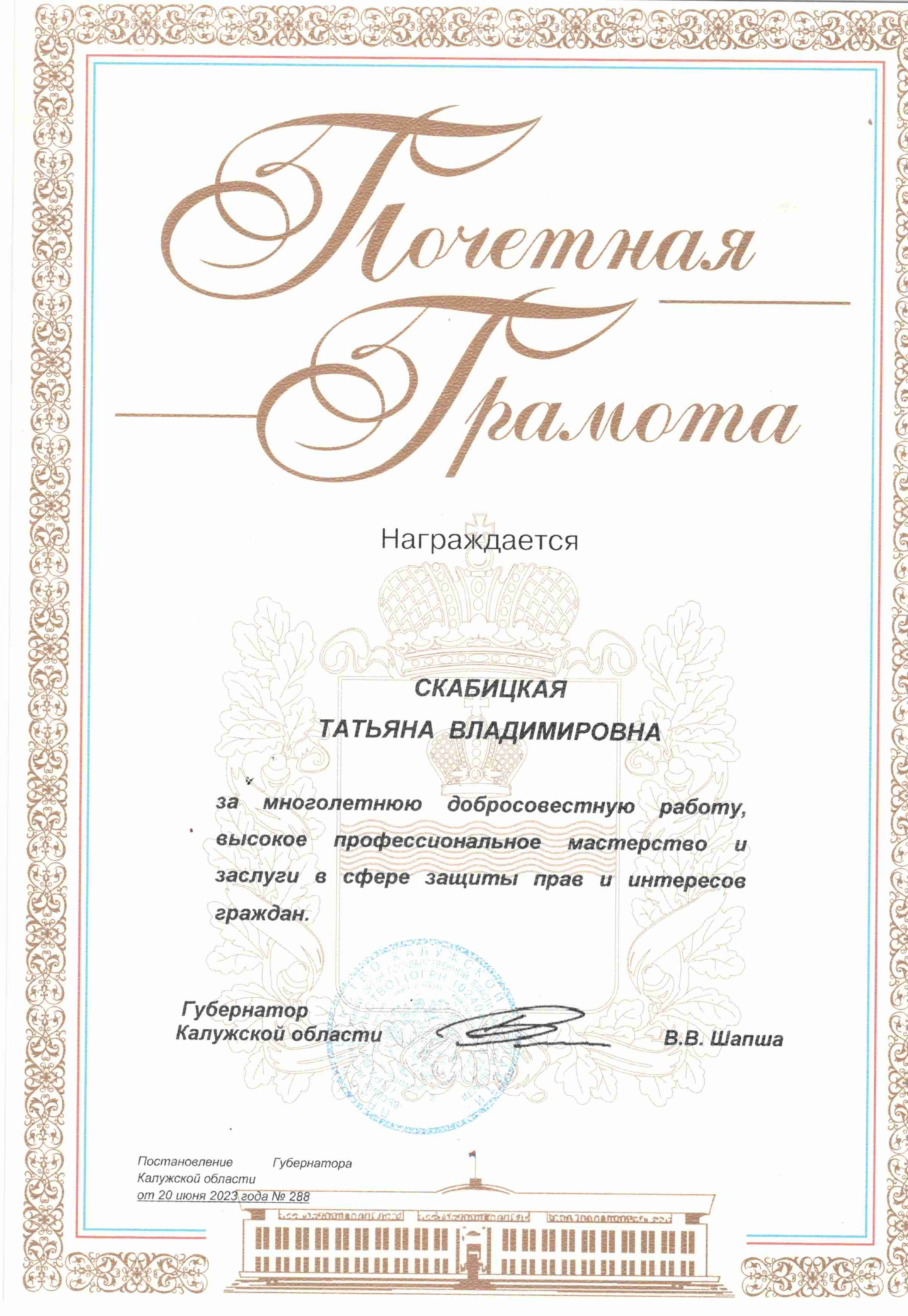 Выражаю искреннюю благодарность Татьяне Владимировне Скабицкой! Огромный опыт, отличное знание законодательства, внимательный подход к ... Читать далее