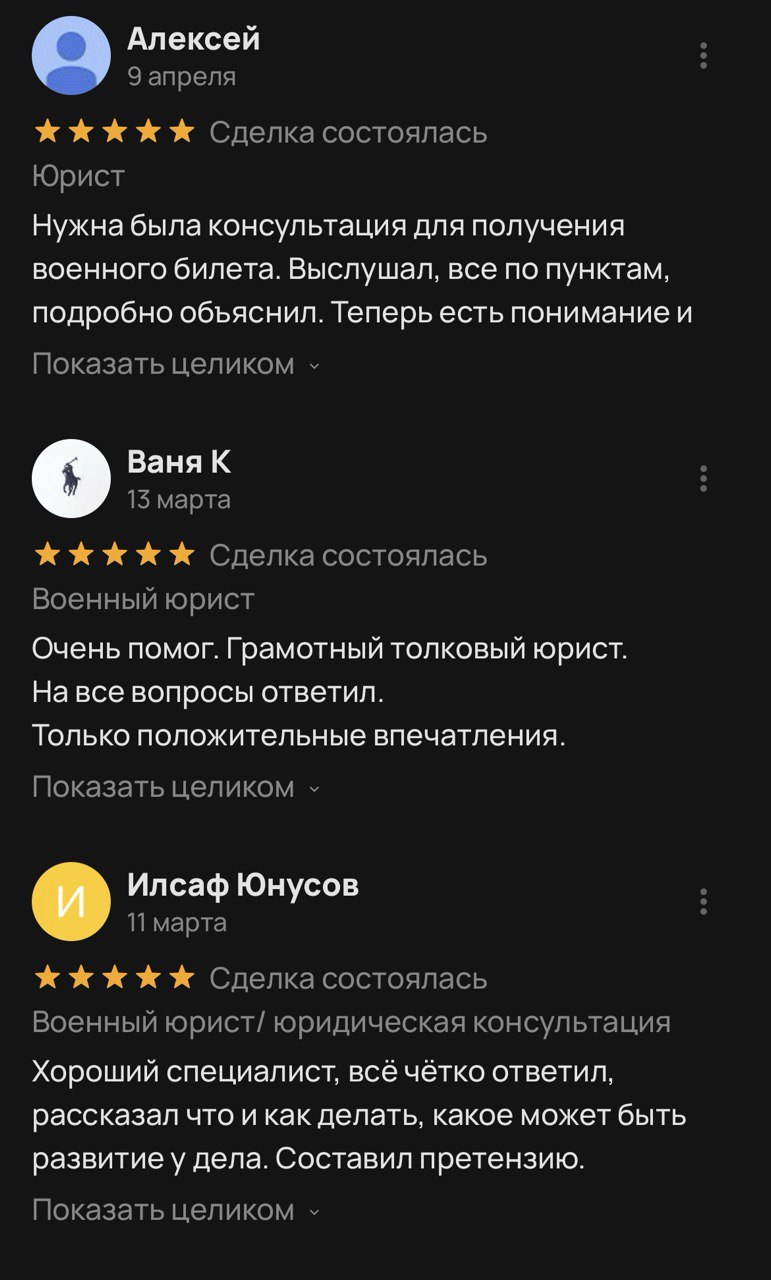 Меня зовут Терезов Антон Михайлович, я юрист по военному праву. Оказываю следующие юридические услуги в области военного права: