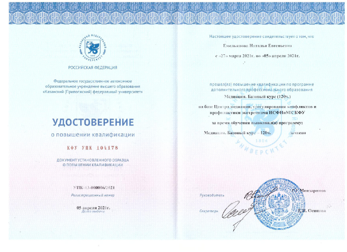 Стаж более 20 лет, начинала работать ещё во время учёбы. Имею опыт работы как инхаус (в найме) в организациях различных направлений и различных форм собственности (частные, государственные, муниципальные), так и в консалтинге (оказание юридических услуг). Работаю практически по любым вопросам, кроме уголовного права. Любимое направление - судебные споры, особенно арбитраж. Примеры возможных судебных споров граждан: земельные, пенсионные, трудовые, наследственные, жилищные споры, недвижимость, защита прав потребителей (страховые, кредитные, медицинские, торговые организации, управляющие компании, др.), обжалование актов и действий/бездействия органов и т.д. Примеры возможных судебных споров юридических лиц: договорные и внедоговорные споры, деликтные обязательства (возмещение ущерба, например), земельные споры, обжалование актов и действий/бездействия органов (налоговые, таможенные органы, приставы, муниципальные администрации и т.п.), интеллектуальные права, банкротство и т.д. Также являюсь медиатором, состою в Лиге медиаторов Поволжья. Активно агитирую всех хотя бы пытаться договариваться, а не сразу судиться