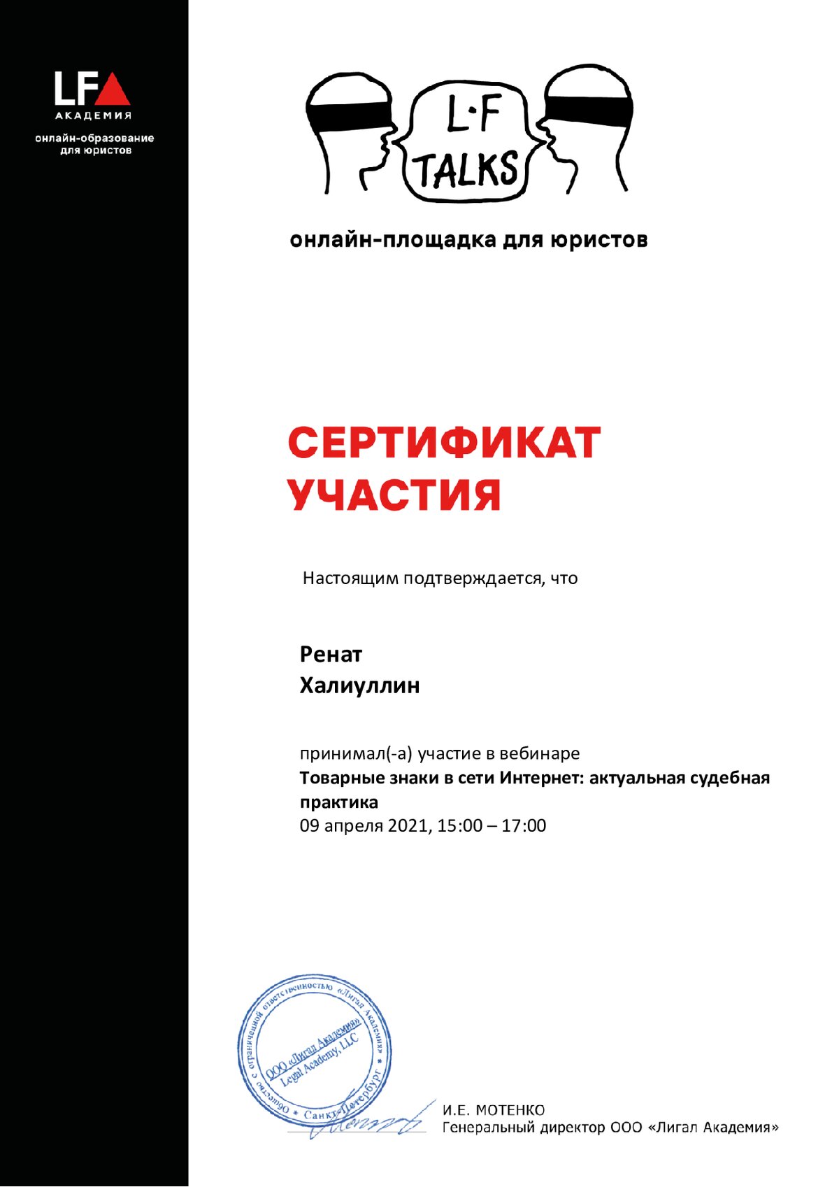 Патентный поверенный Российской Федерации № 1888, руководитель агентства по интеллектуальной собственности “Таумарк”. Опыт работы в сфере защиты объектов интеллектуальной собственности более 16 лет. Агентство создано специалистами с богатым опытом работы в первую очередь с целью помочь малому и среднему бизнесу по защите своего интеллектуального капитала. За 11 лет агентство «Таумарк» помогло оформить российским и зарубежным компаниям более тысячи различных объектов интеллектуальной собственности, включая помощь не только в их регистрации, но и реальная поддержка в борьбе с конкурентами, которые незаконно использовали результаты интеллектуального труда наших клиентов. Нашими основными услугами являются: • Регистрация товарных знаков / знаков обслуживания • Оформление патентов на изобретения/полезные модели и промышленные образцы • Защита авторских прав на произведения литературы, музыки, живописи, декоративно-прикладного искусства и т.д. • Защита программного обеспечения, куда входят приложения для смартфонов, персональных компьютеров, защита сайтов и его уникального контента • Учёт интеллектуальной собственности в организациях, направленный на систематизацию каждого объекта интеллектуальной собственности • Ведение судебных дел, связанных с нарушениями прав в области интеллектуальной собственности, а также досудебное урегулирование конфликтов.