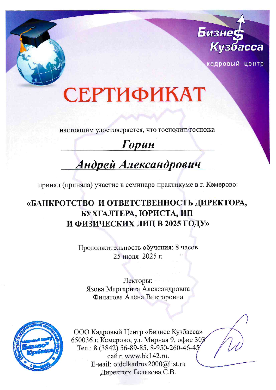 Имею большой опыт в области банкротства физических лиц и в вопросах общей юрисдикции. Готов проконсультировать и помочь в семейных спорах, спорах по наследству, земельных спорах, любые категории дел связанных с защитой прав потребителей.